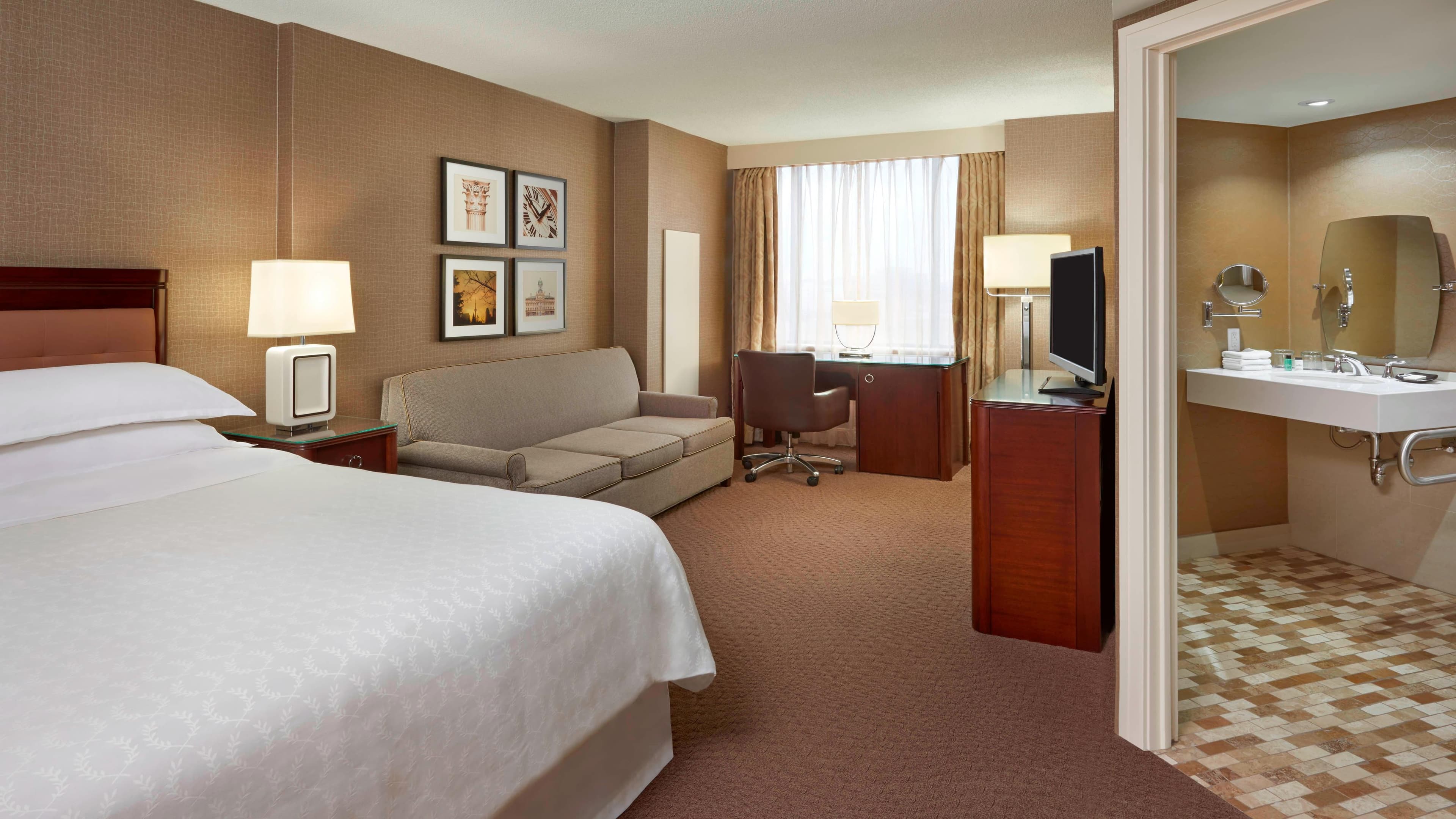 Sheraton Parkway Toronto North Hotel & Suites in Richmond Hill gives you everything you need for your stay. With easy access to highways 404, 407 and 7 you can explore Toronto with ease. Our hotel offers indoor and outdoor parking, WIFI, 2 indoor pools, Oasis Outdoor Pool + Patio (open seasonally) with cabanas, an in-house spa, Starbucks, Crave Restaurant and Spirits Bar & Lounge on-site. Enjoy modern accommodations featuring Gilchrist & Soames bath amenities, plush bedding and a mini-fridge in each guest room. Add in-room dining to the mix, and you're well on your way to feeling right at home. As one of the largest conference centres in Toronto with over 30,000 sq. ft. of flexible event space, we can host banquets for up to 1,000 guests featuring upscale décor, AV equipment and customizable catering options. A warm welcome awaits at this hotel in North Toronto